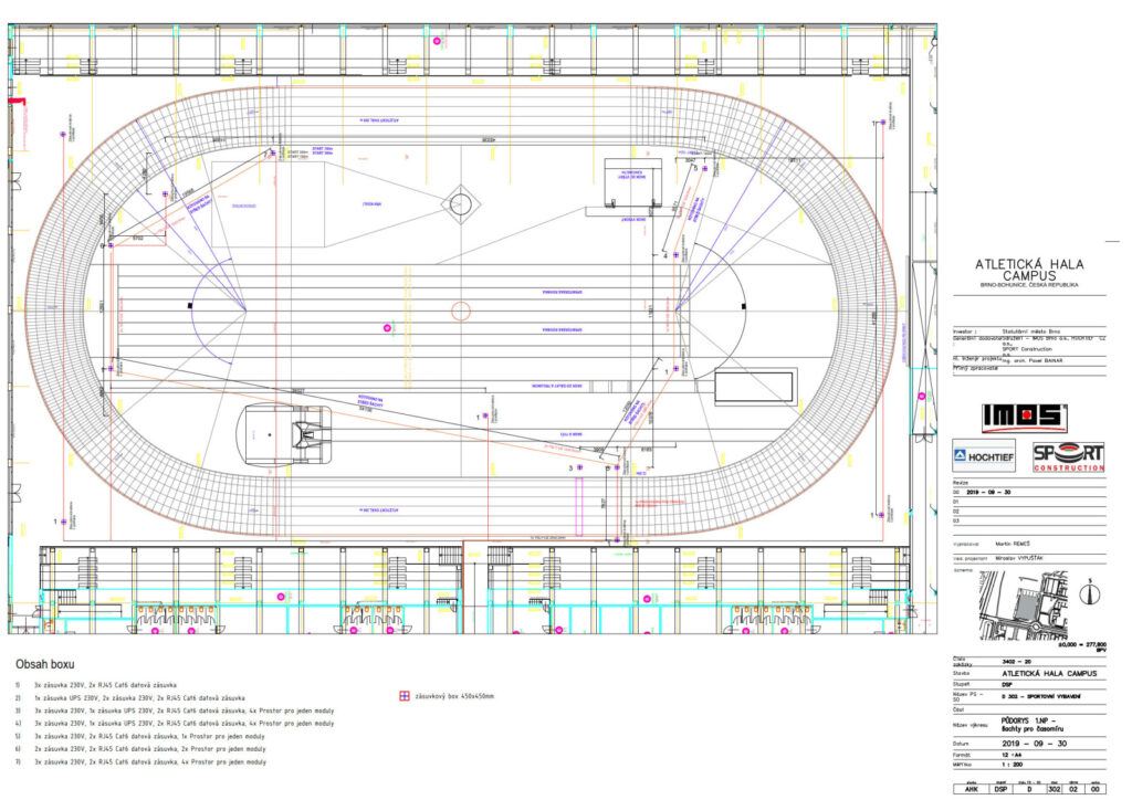 Popis: Atletická hala Campus Brno – zpracování části projektu pro ÚR/SP sportovní plochy a sportovní vybavení. Atletická hala s parametry splňujícími kritéria Mezinárodní asociace atletických federací pro národní i mezinárodní soutěže
